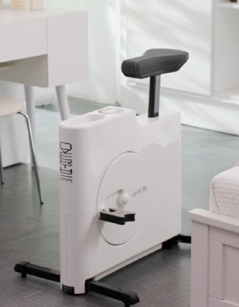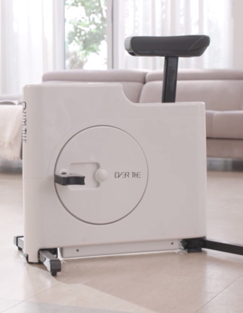 오버더바이크는 접이식 디자인을 적용해 사용하지 않을 때는 폭 12cm로 접어 보관할 수 있습니다. 또한 8단계 운동 강도 조절이 가능하여 사용자 개인의 운동 수준에 맞게 조절할 수 있습니다.