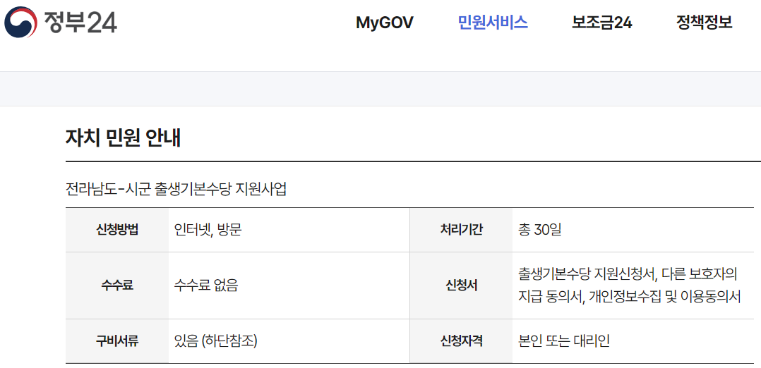 - 지급 대상: 2024년 이후 출생아로, 전남에서 출생신고를 한 경우