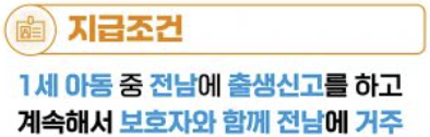 - 거주 요건: 보호자(부모)와 출생 아동이 계속 전남에 거주해야 함