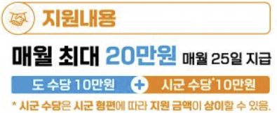 - 전라남도 지원: 모든 시·군에서 동일하게 월 10만 원(현금) 지급