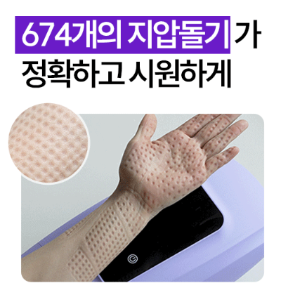- 674개의 지압돌기: 손의 굴곡에 맞춘 설계와 혈자리를 따라 누르는 정밀한 지압으로 효과적인 피로 해소.