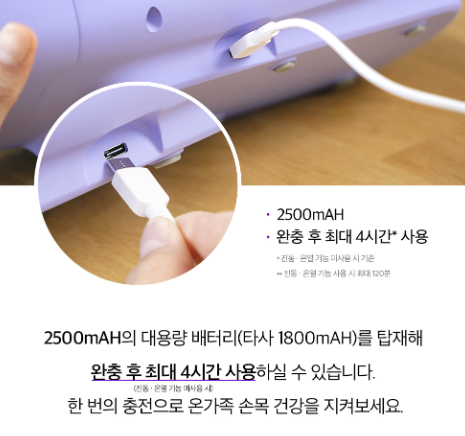 - 손목 마사지 가능: 손뿐만 아니라 손목까지 마사지 가능해 장시간 타이핑, 육아 등으로 지친 손목까지 케어.