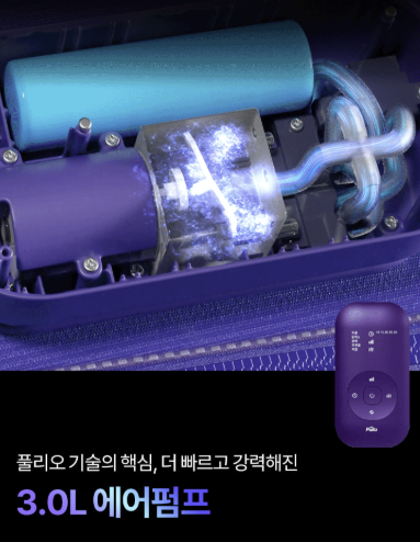 - 일반 모델 대비 강력한 에어압력: 일반 제품은 2.0L 이하 에어펌프가 대부분이나, 풀리오는 3.0L로 더 깊고 강한 마사지를 구현합니다.