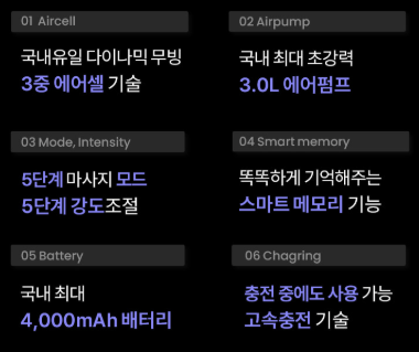 - 강력한 마사지 성능: 3.0L 에어펌프를 탑재해 기존 마사지기보다 더 깊고 강한 압력을 제공합니다.