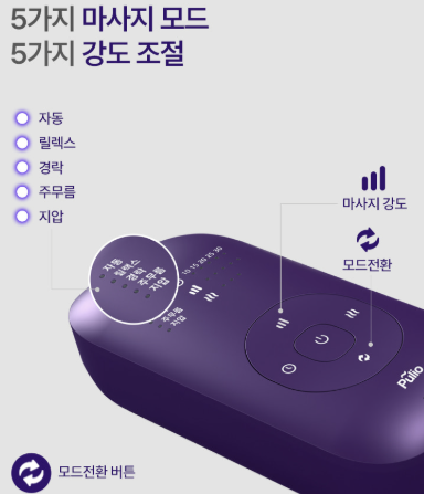 - 5가지 마사지 모드 & 5단계 강도 조절: 원하는 부위와 기호에 맞춰 맞춤형 마사지가 가능합니다.