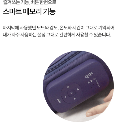 - 착용 편의성: 지퍼+벨크로 이중 고정 방식으로 일반 마사지기 대비 더 정밀한 착용감을 제공합니다.