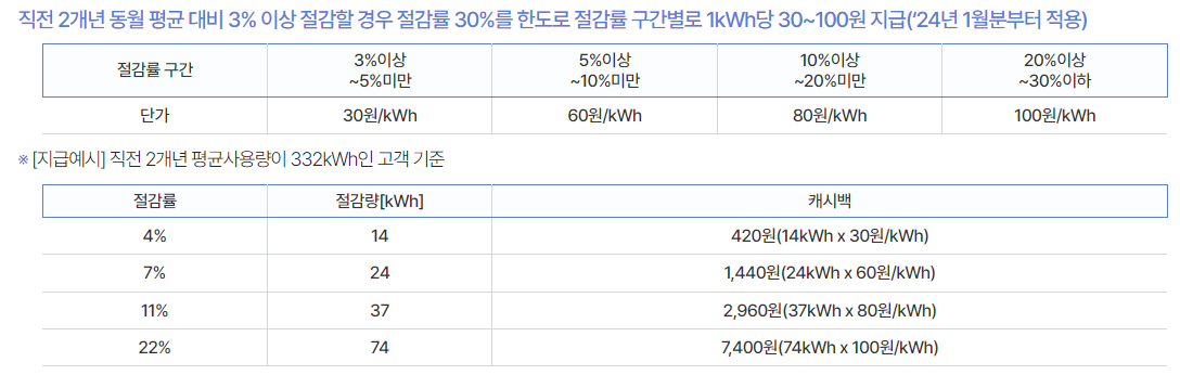 - 예: 10월분 사용량에 따른 캐시백은 11월 전기요금에서 차감.