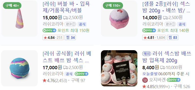 - 러쉬 (LUSH) 버블 바: 천연 성분과 강렬한 향기로 유명하며, 환경 친화적인 제품입니다.