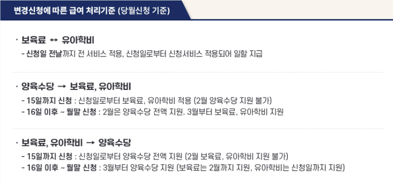 - 양육수당 → 어린이집(보육료) 변경하는 경우